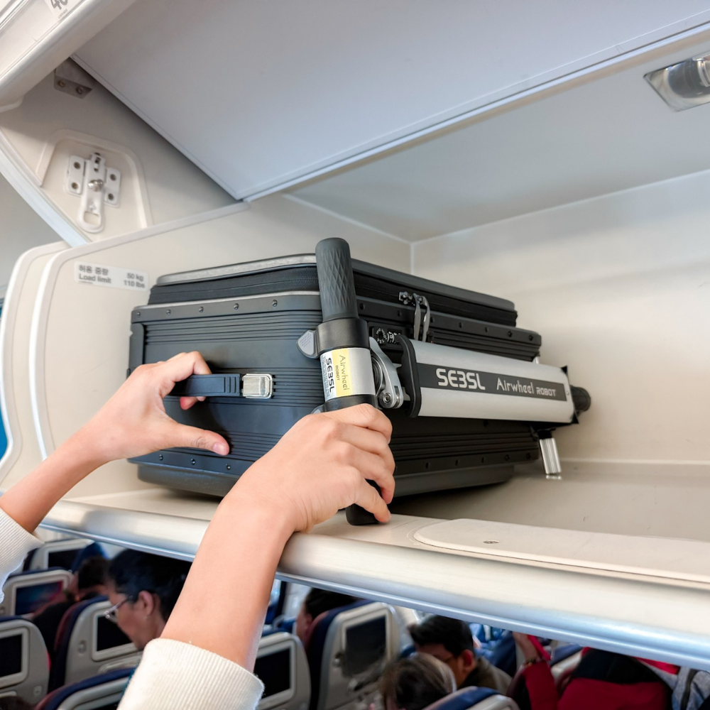 قد يُسمح بحمل حقائب Airwheel الموديلات SE3S وSE3SL وSE3MiniT وSQ3S وSQ3 كحقائب يد على بعض الرحلات، ولكن سياسات شركات الطيران قد تختلف.